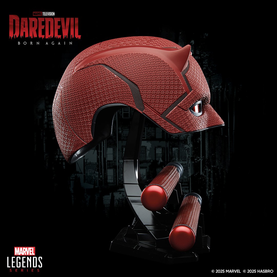 Hasbro Marvel Legends presenta con orgullo esta reproducción a escala 1:1 de la icónica máscara de Daredevil de la serie: Renacido. Esta máscara para juego de rol, con un diseño premium, presenta los característicos cuernos y ojos rojos del personaje. El set también incluye un Billy Club desmontable de dos piezas para imaginar a Daredevil en acción. Este set de rol de Marvel incluye una base y es ideal para exhibir en las colecciones de los fans. Da vida a las escenas inspiradas en la serie con las figuras de acción, el equipo de rol y los coleccionables de Marvel Legends (se venden por separado y están sujetos a disponibilidad).
