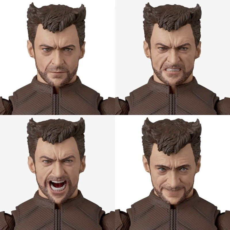 Figura super artículada marca Mafex de Wolverine con su traje color Marrón inspirado en la pelicula de Marvel Studios Deadpool & Wolverine (2024) con accesorios incluidos como cambio de cara y de manos para que saques las mejores poses para fotografia o colección!