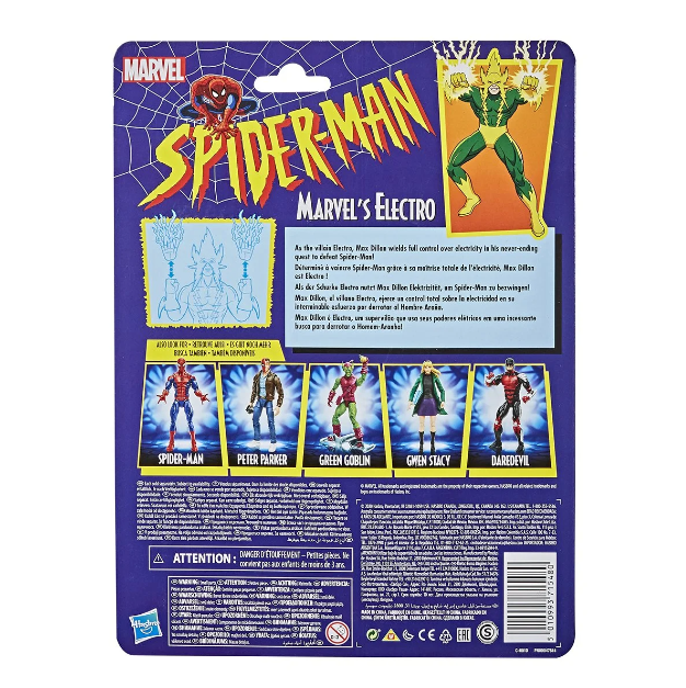 Figura de acción Spider-Man Retro Marvel Legends Electro de 6 pulgadas: